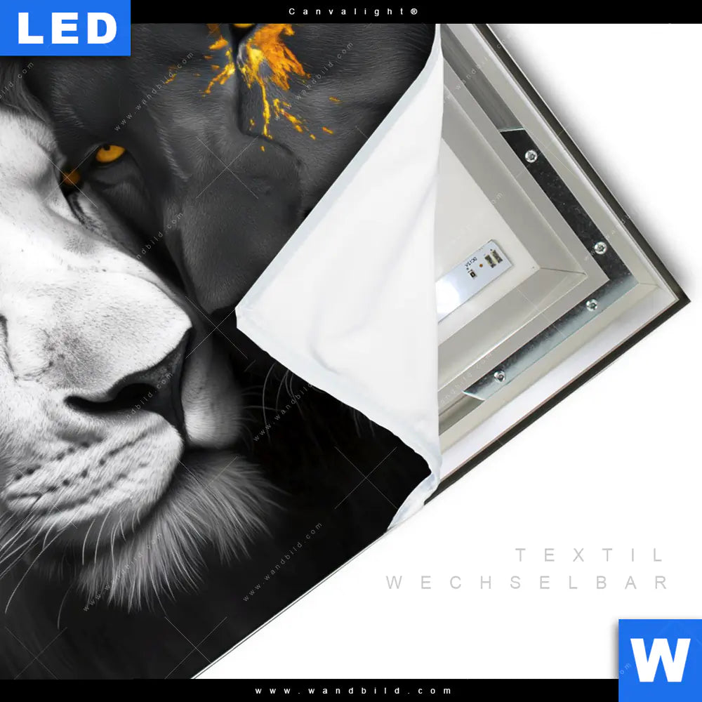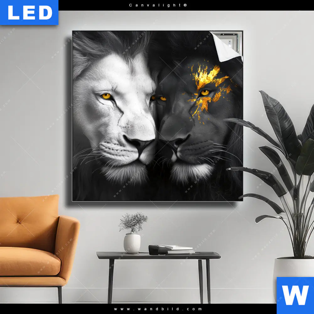 Canvalight® TEX Leuchtbild | Zwei Löwen Schwarz & Weiß | Quadrat