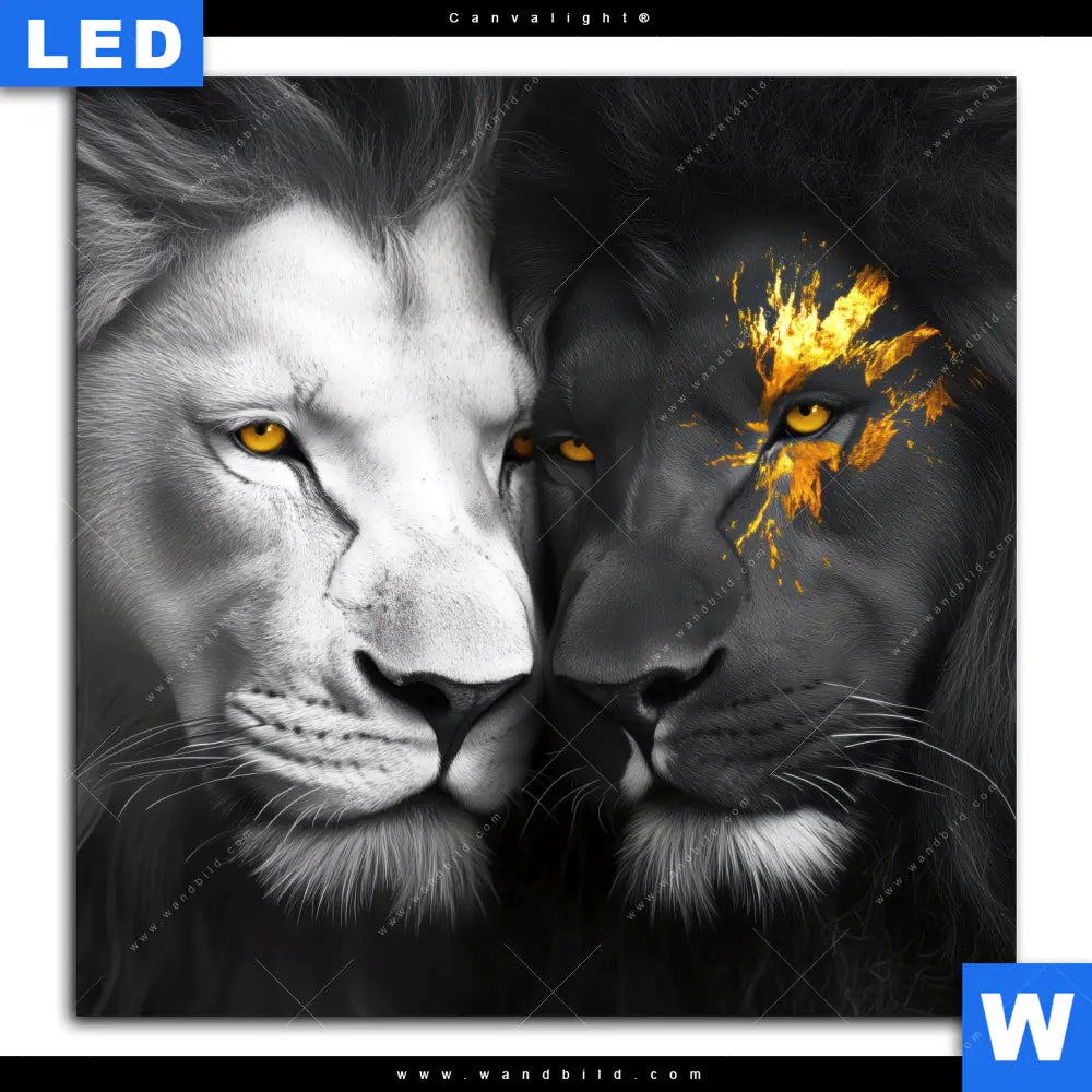 Canvalight® Leuchtbild | Zwei Löwen Schwarz & Weiß | Quadrat