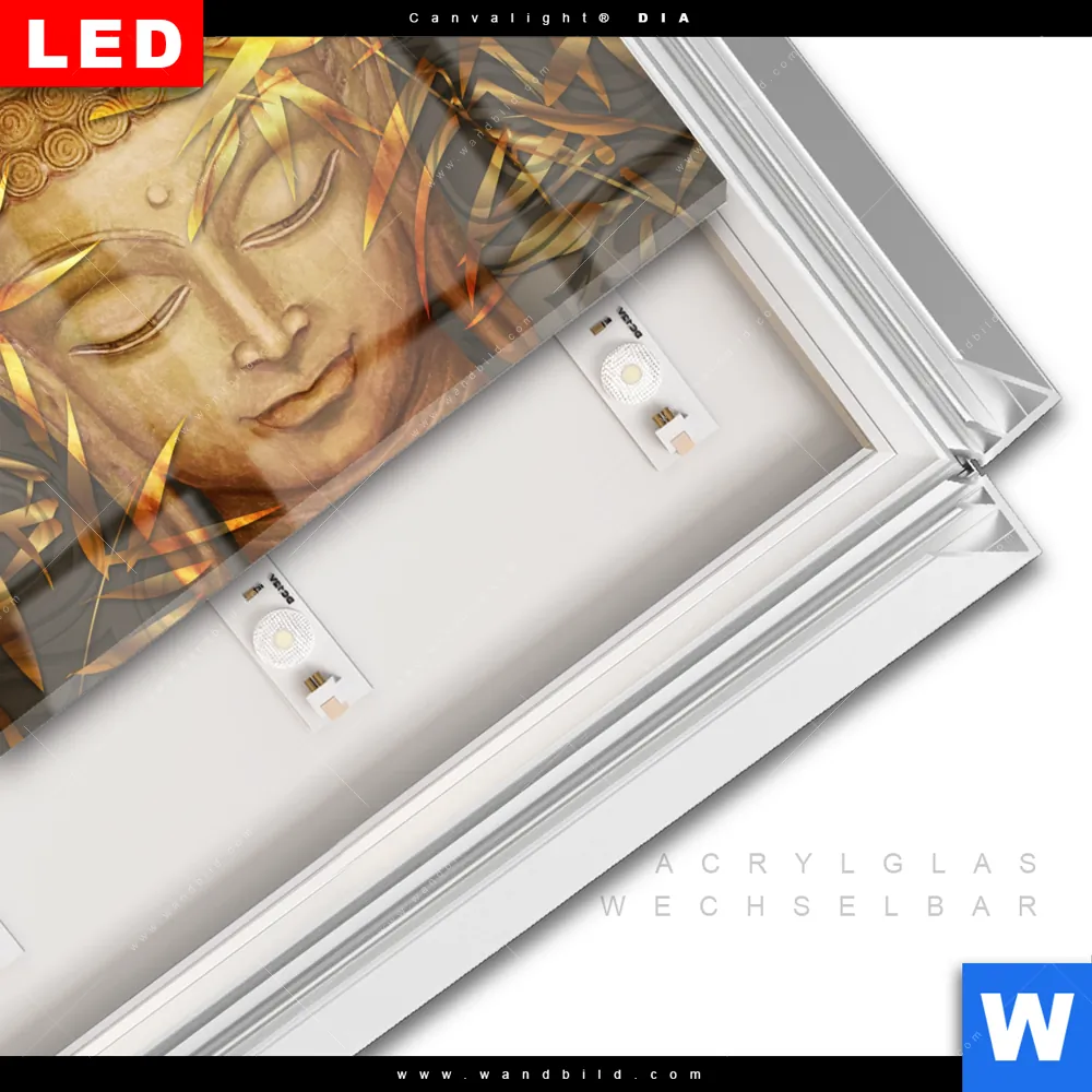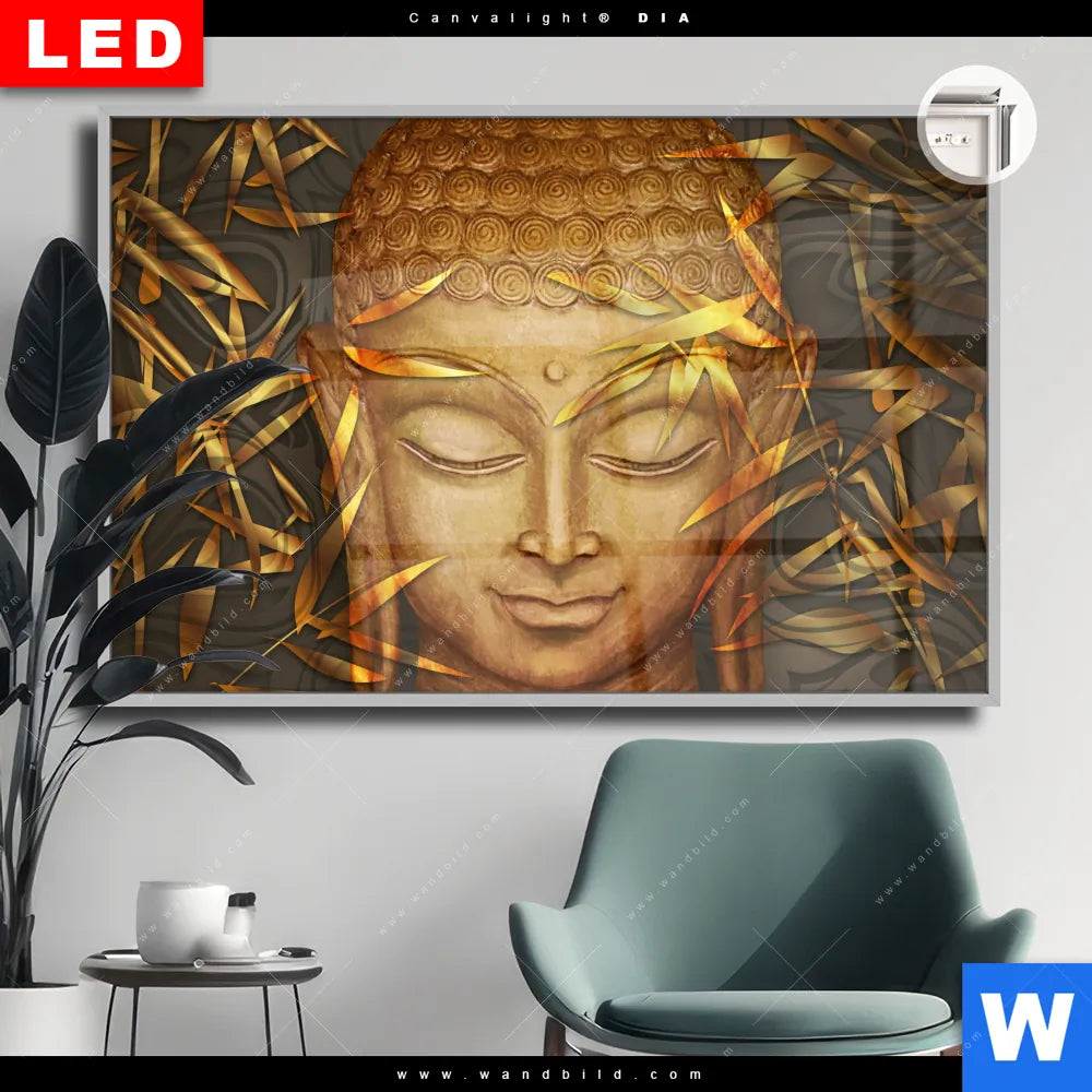 Canvalight® DIA Leuchtbild | Buddha & Bambus in Gold | Querformat