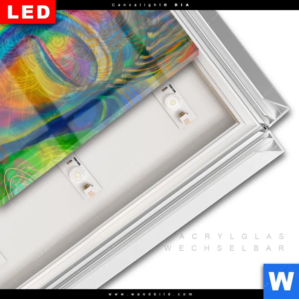 LED-Glasbild mit austauschbarem Acrylglas-Druck (Wechselbild)
