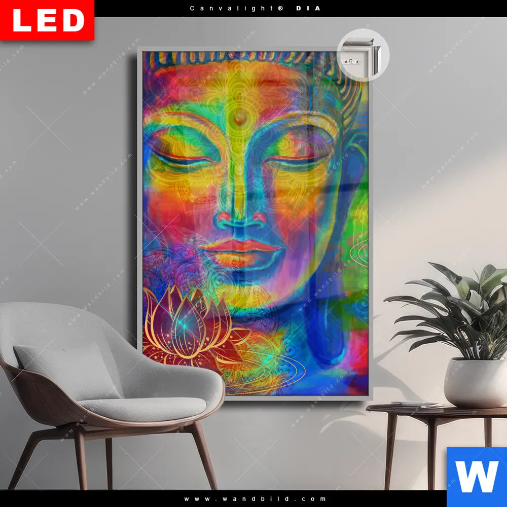 Canvalight® DIA Leuchtbild | Bunter Buddha No.2 | Hochformat