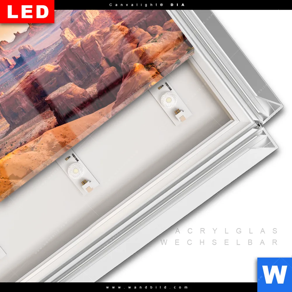LED-Glasbild mit austauschbarem Acrylglas-Druck (Wechselbild)