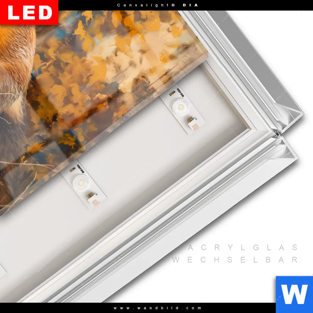 Canvalight® DIA Leuchtbild | Herbstzeit mit Rotfuchs | Quadrat