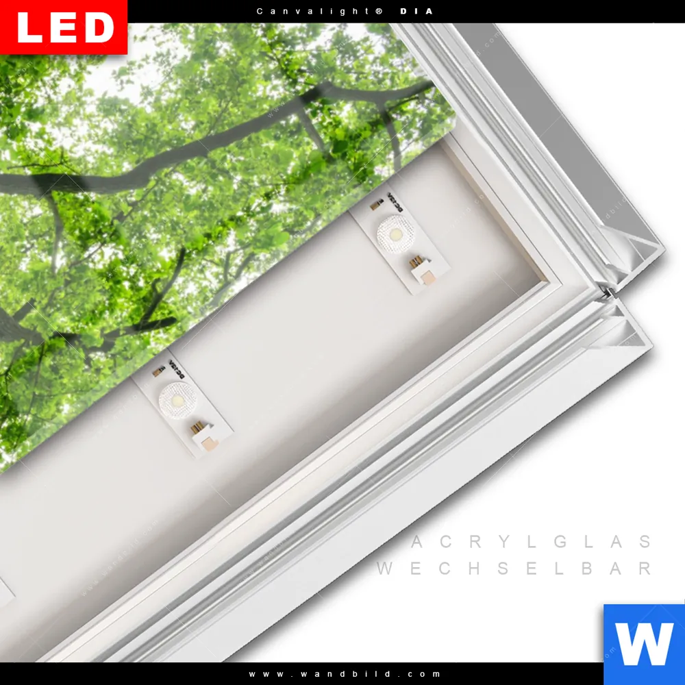 LED-Glasbild mit austauschbarem Acrylglas-Druck (Wechselbild)