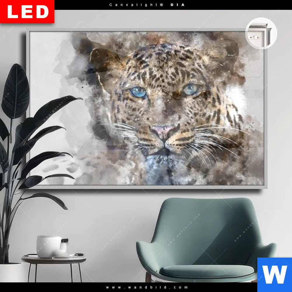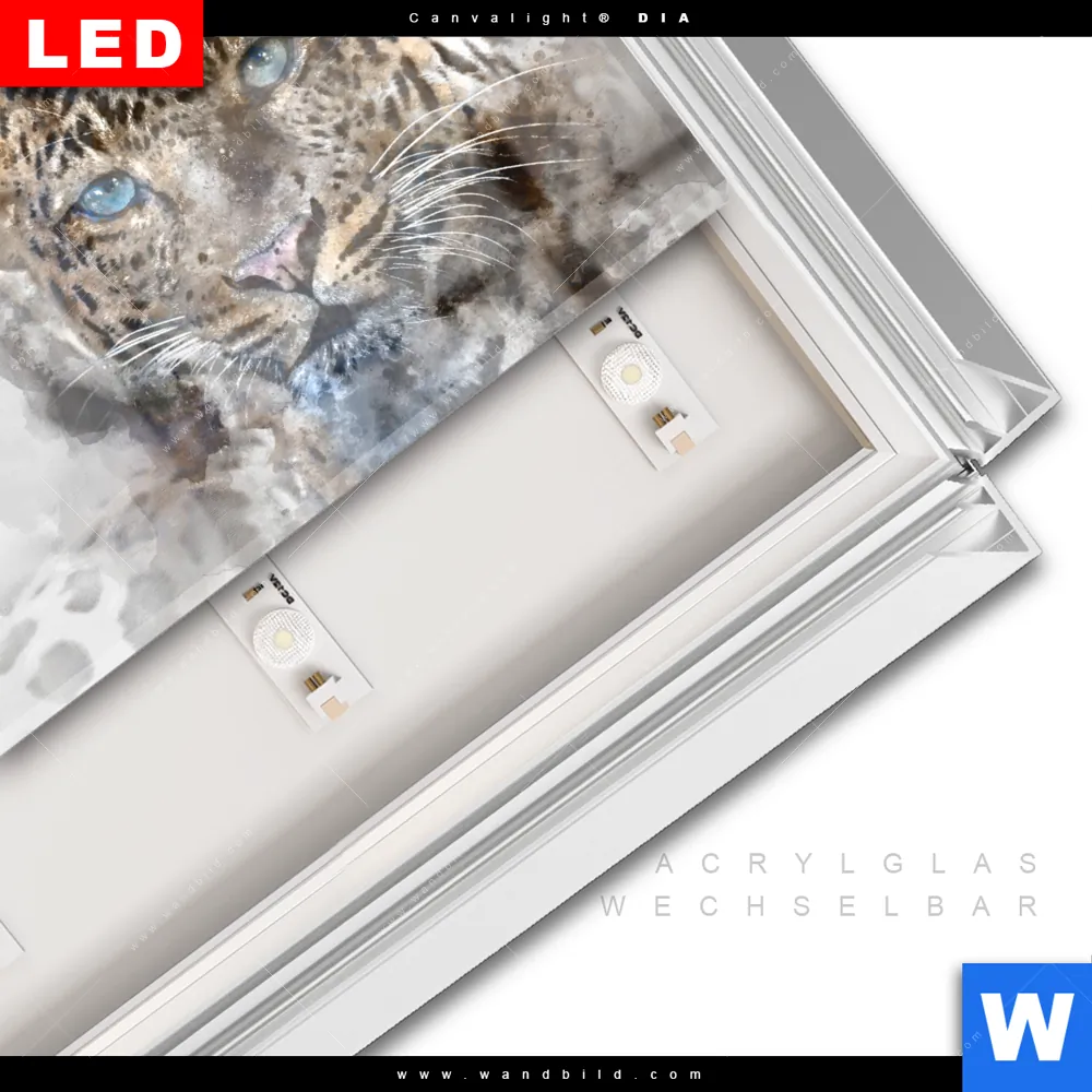 Canvalight® DIA Leuchtbild | Leopard Aquarell | Querformat