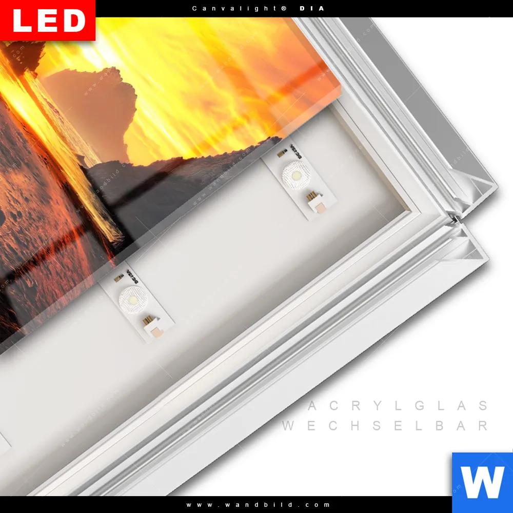LED-Glasbild mit austauschbarem Acrylglas-Druck (Wechselbild)