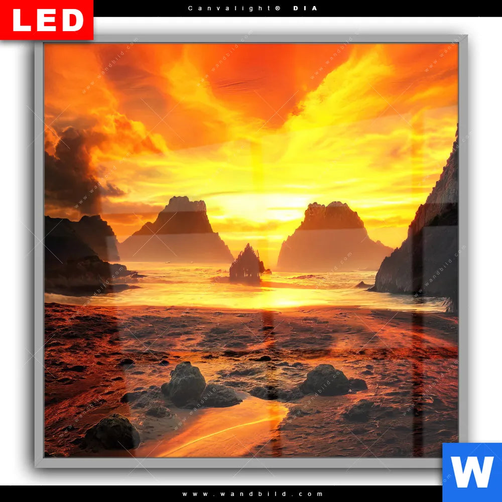 Canvalight® DIA Leuchtbild | Magische Steinlandschaft im Meer | Quadrat