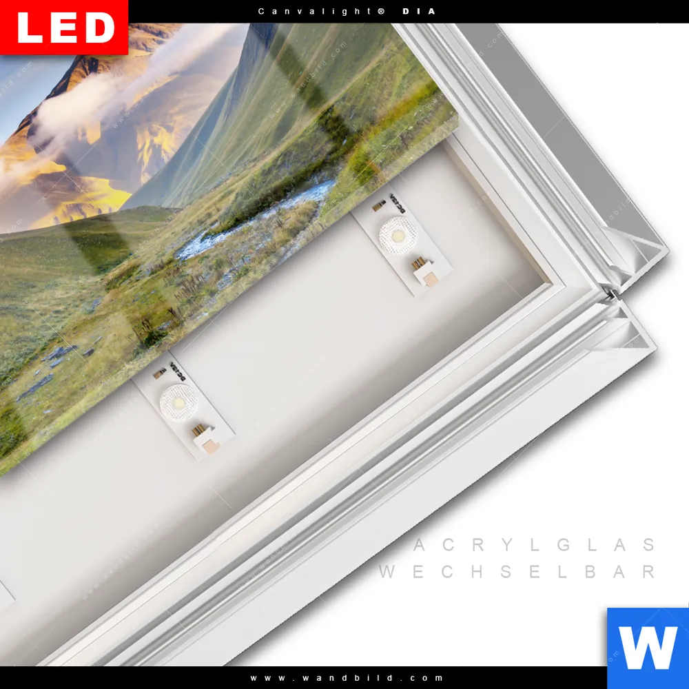 LED-Glasbild mit austauschbarem Acrylglas-Druck (Wechselbild)