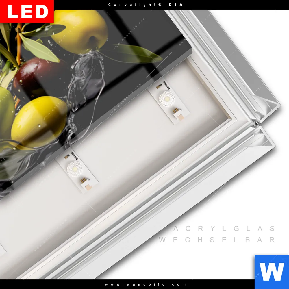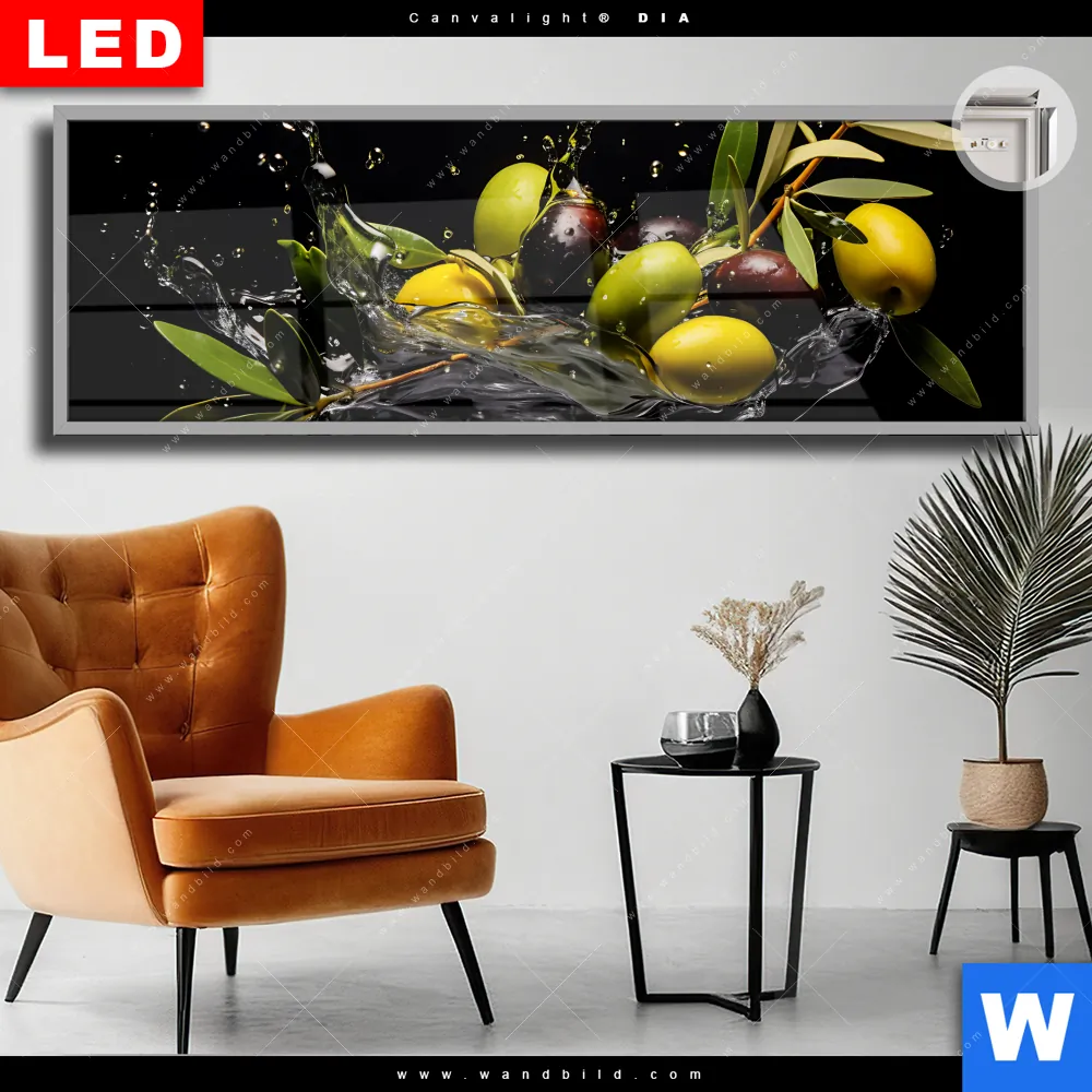 Canvalight® DIA Leuchtbild | Oliven Splash | Panorama