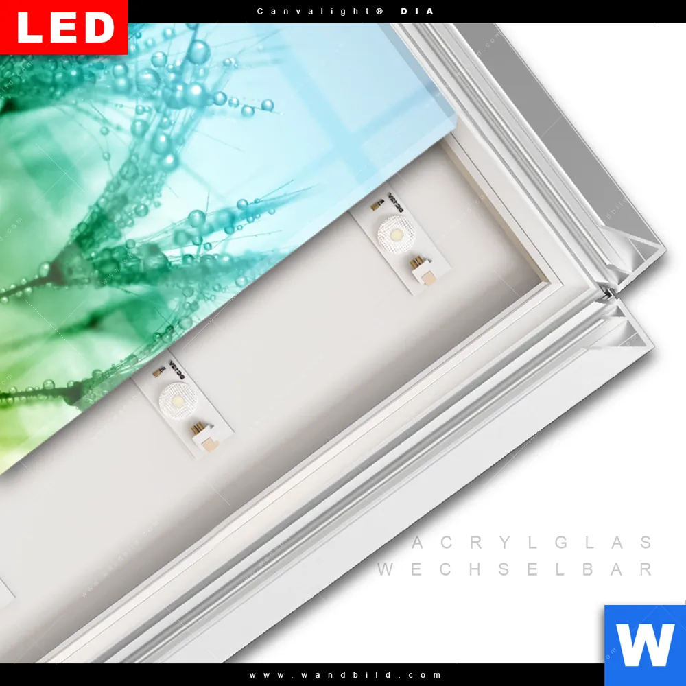 LED-Glasbild mit austauschbarem Acrylglas-Druck (Wechselbild)