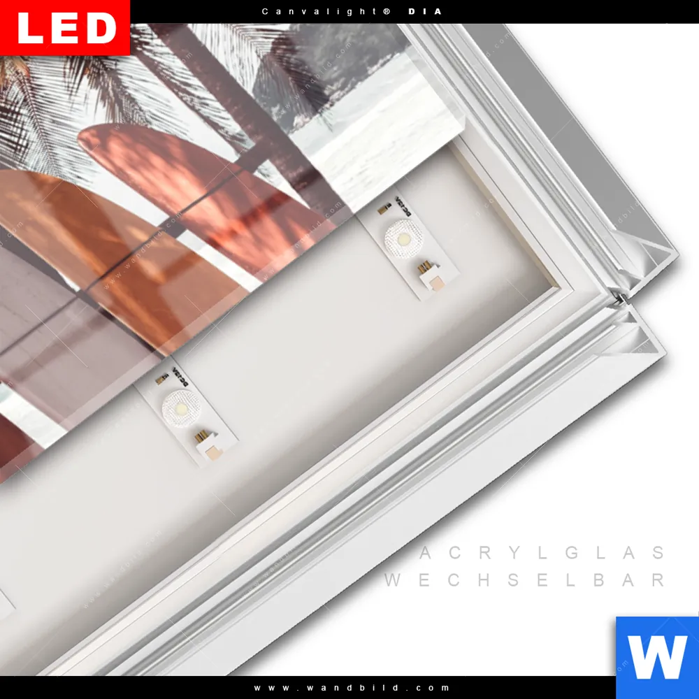 LED-Glasbild mit austauschbarem Acrylglas-Druck (Wechselbild)