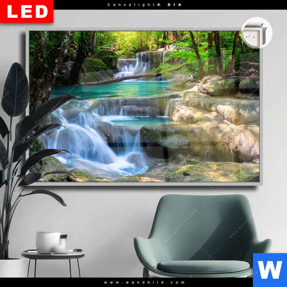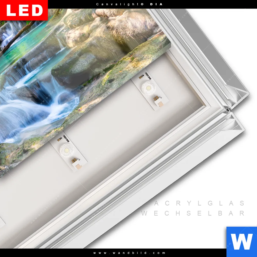 Canvalight® DIA Leuchtbild | Tropischer Wasserfall | Querformat