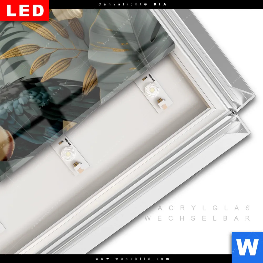 LED-Glasbild mit austauschbarem Acrylglas-Druck (Wechselbild)