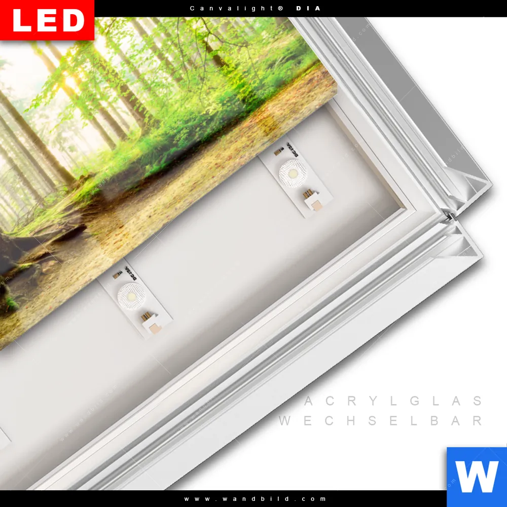LED-Glasbild mit austauschbarem Acrylglas-Druck (Wechselbild)