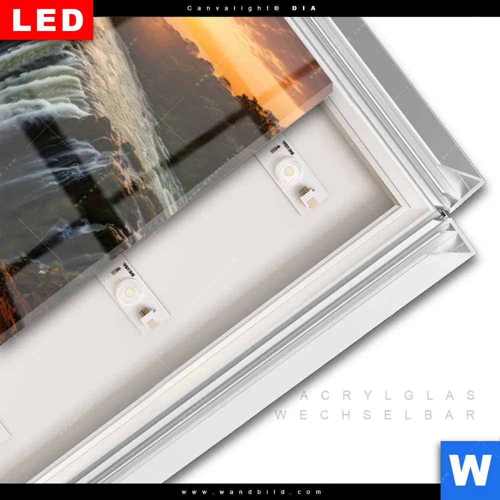 LED-Glasbild mit austauschbarem Acrylglas-Druck (Wechselbild)