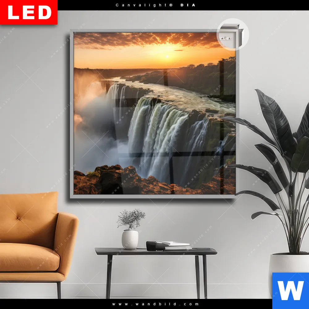 Canvalight® DIA Leuchtbild | Wasserfall bei Abendsonne | Quadrat