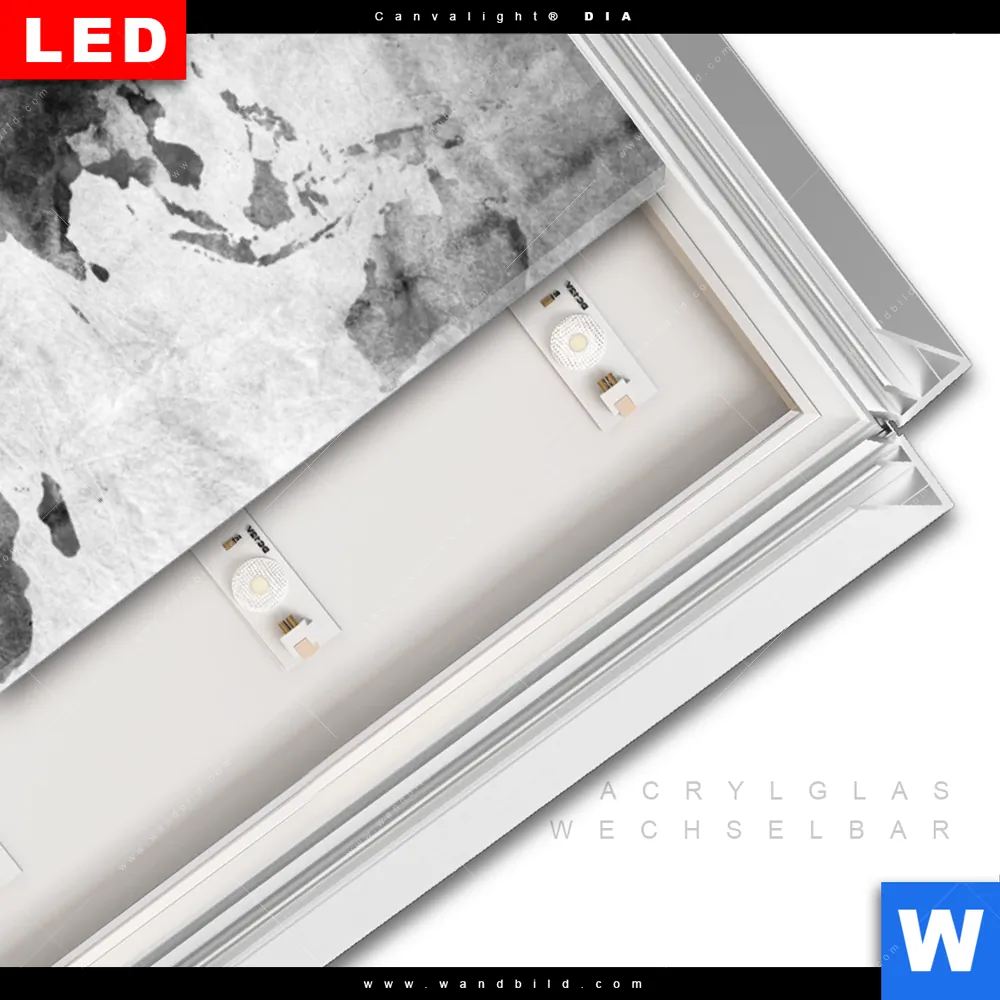 LED-Glasbild mit austauschbarem Acrylglas-Druck (Wechselbild)