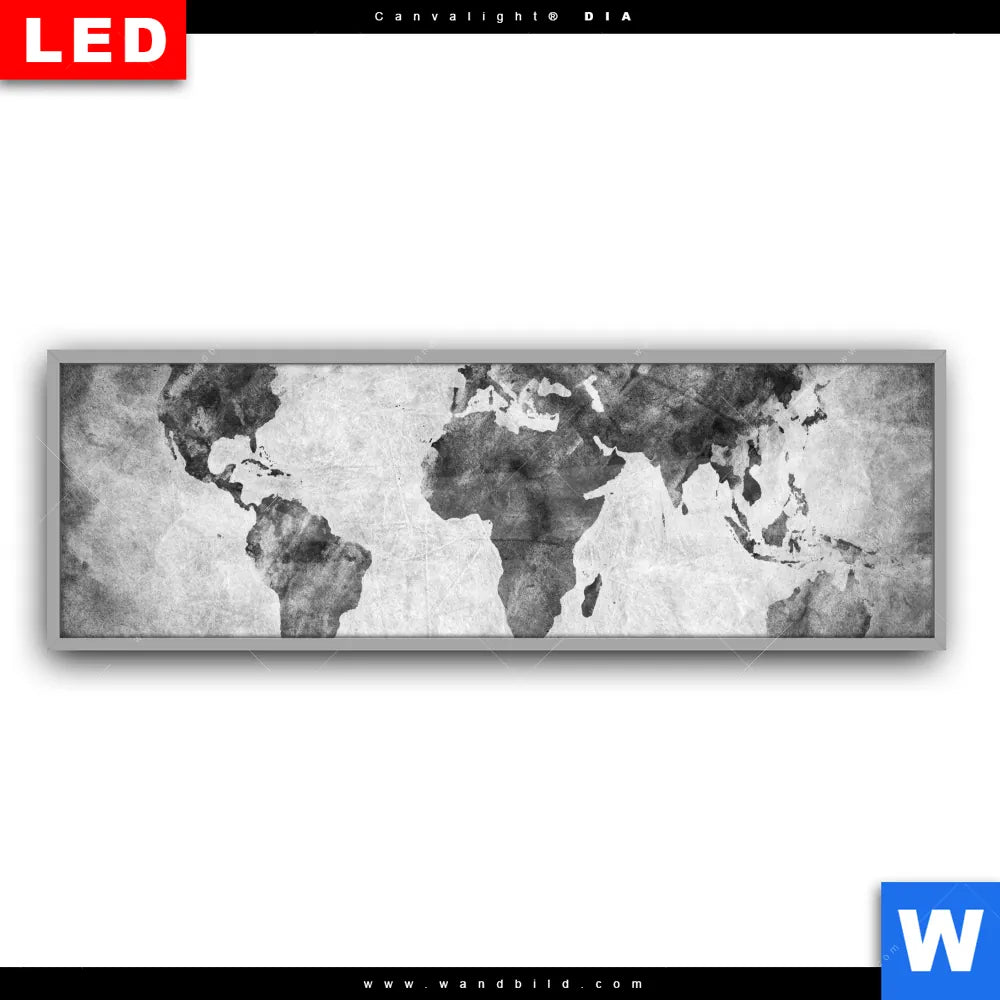 Canvalight® DIA Leuchtbild | Weltkarte Grautöne | Panorama