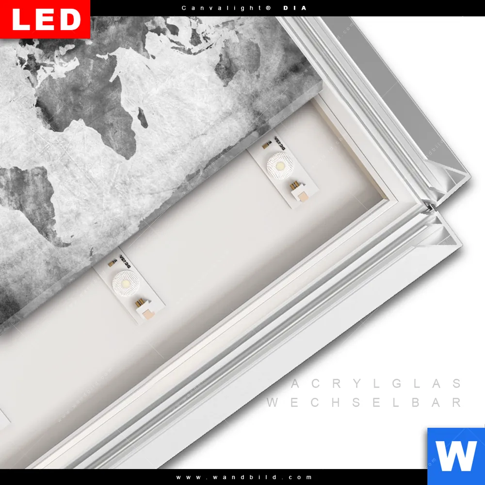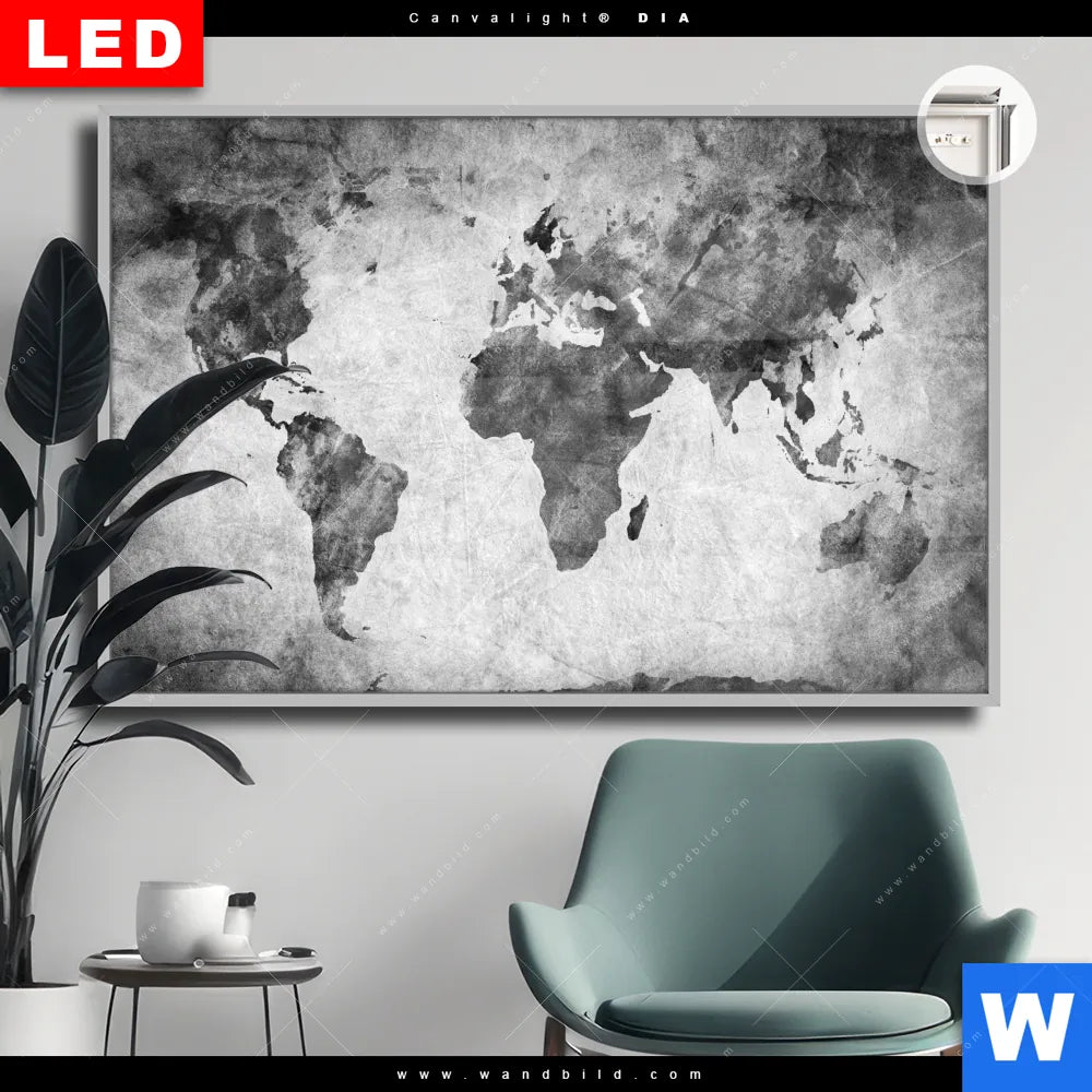 Canvalight® DIA Leuchtbild | Weltkarte Grautöne | Querformat
