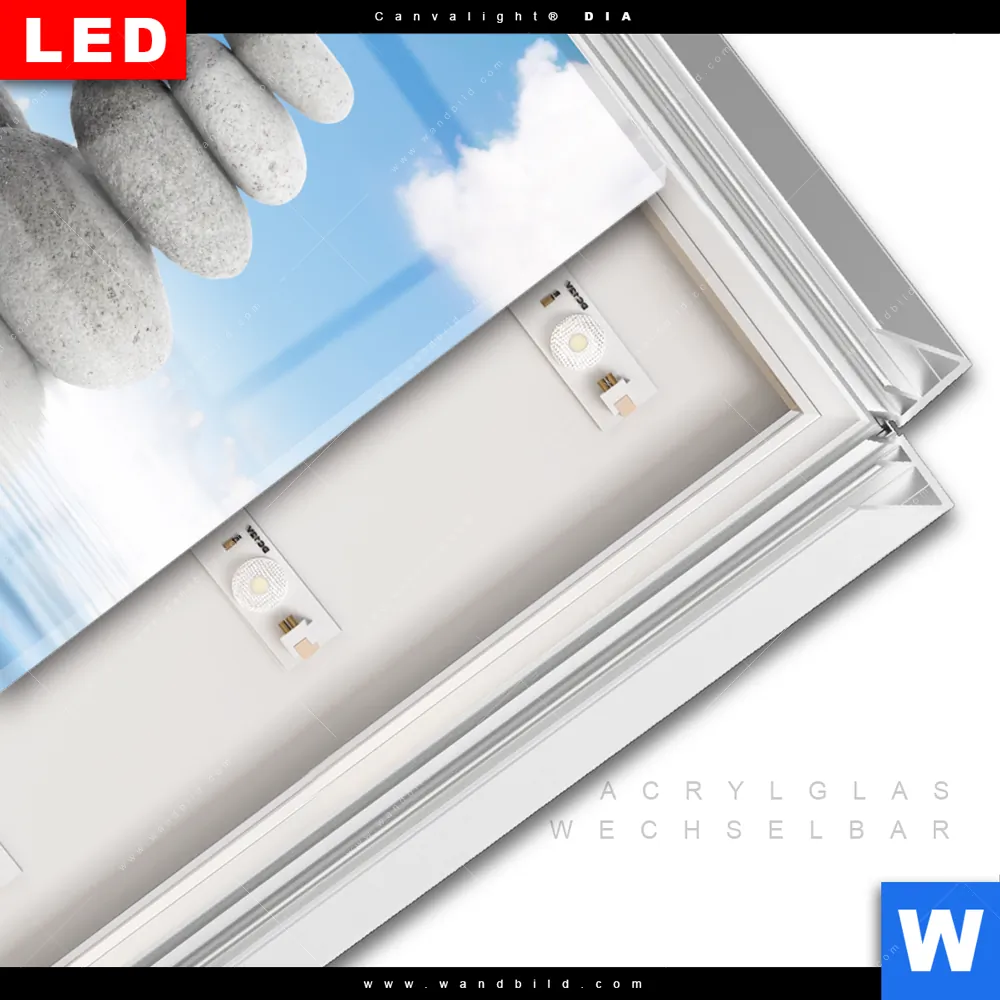 LED-Glasbild mit austauschbarem Acrylglas-Druck (Wechselbild)