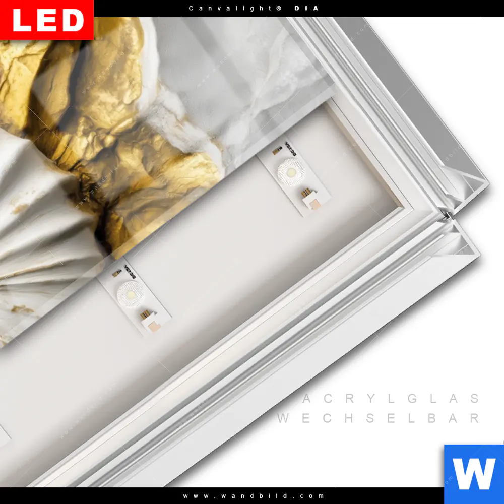LED-Glasbild mit austauschbarem Acrylglas-Druck (Wechselbild)