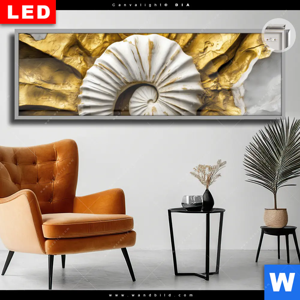 Canvalight® DIA Leuchtbild | Goldene Muschel-Kunst | Panorama