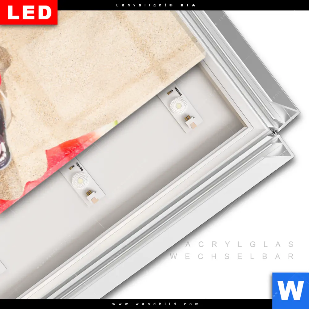 LED-Glasbild mit austauschbarem Acrylglas-Druck (Wechselbild)
