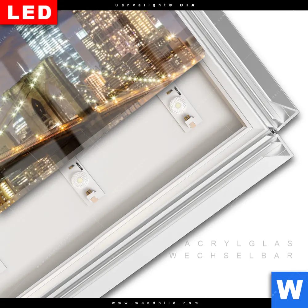 LED-Glasbild mit austauschbarem Acrylglas-Druck (Wechselbild)
