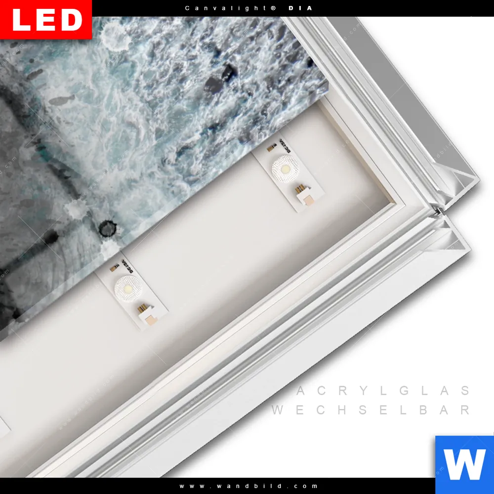 LED-Glasbild mit austauschbarem Acrylglas-Druck (Wechselbild)