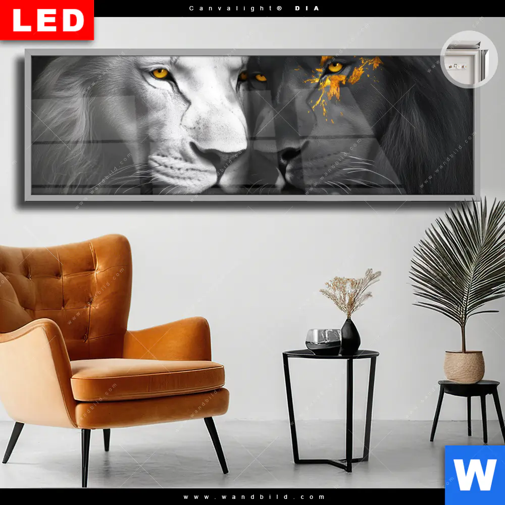 Canvalight® DIA Leuchtbild | Zwei Löwen Schwarz & Weiß | Panorama