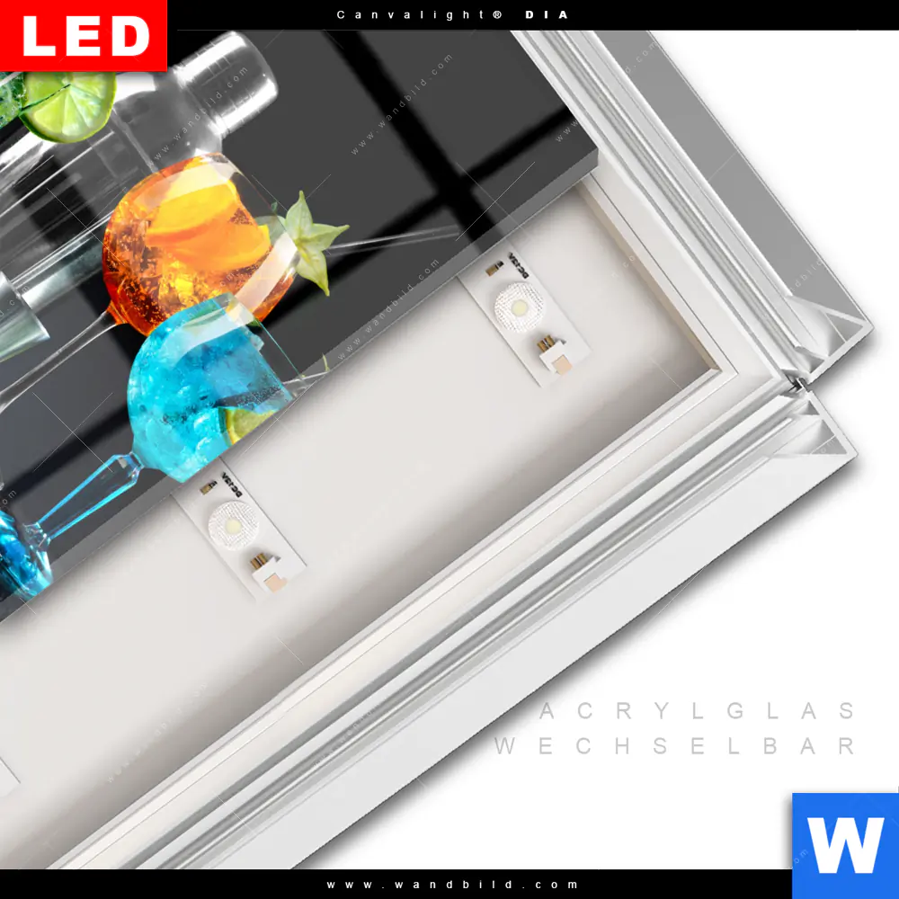 LED-Glasbild mit austauschbarem Acrylglas-Druck (Wechselbild)