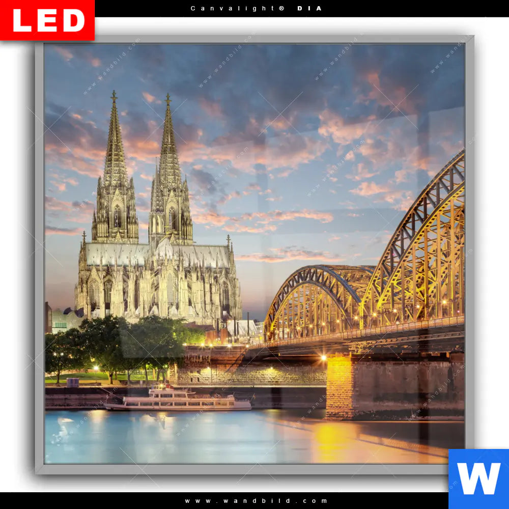 Canvalight® DIA Leuchtbild | Kölner Dom bei Nacht | Quadrat