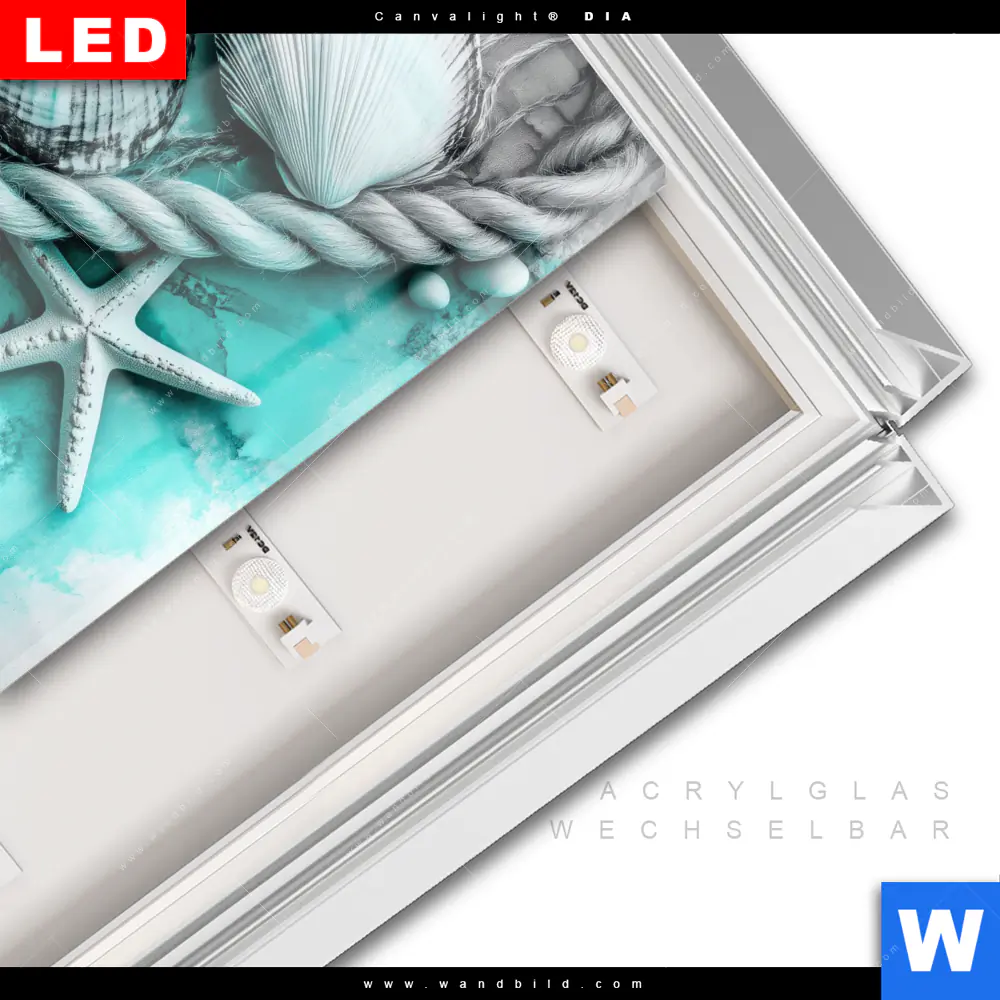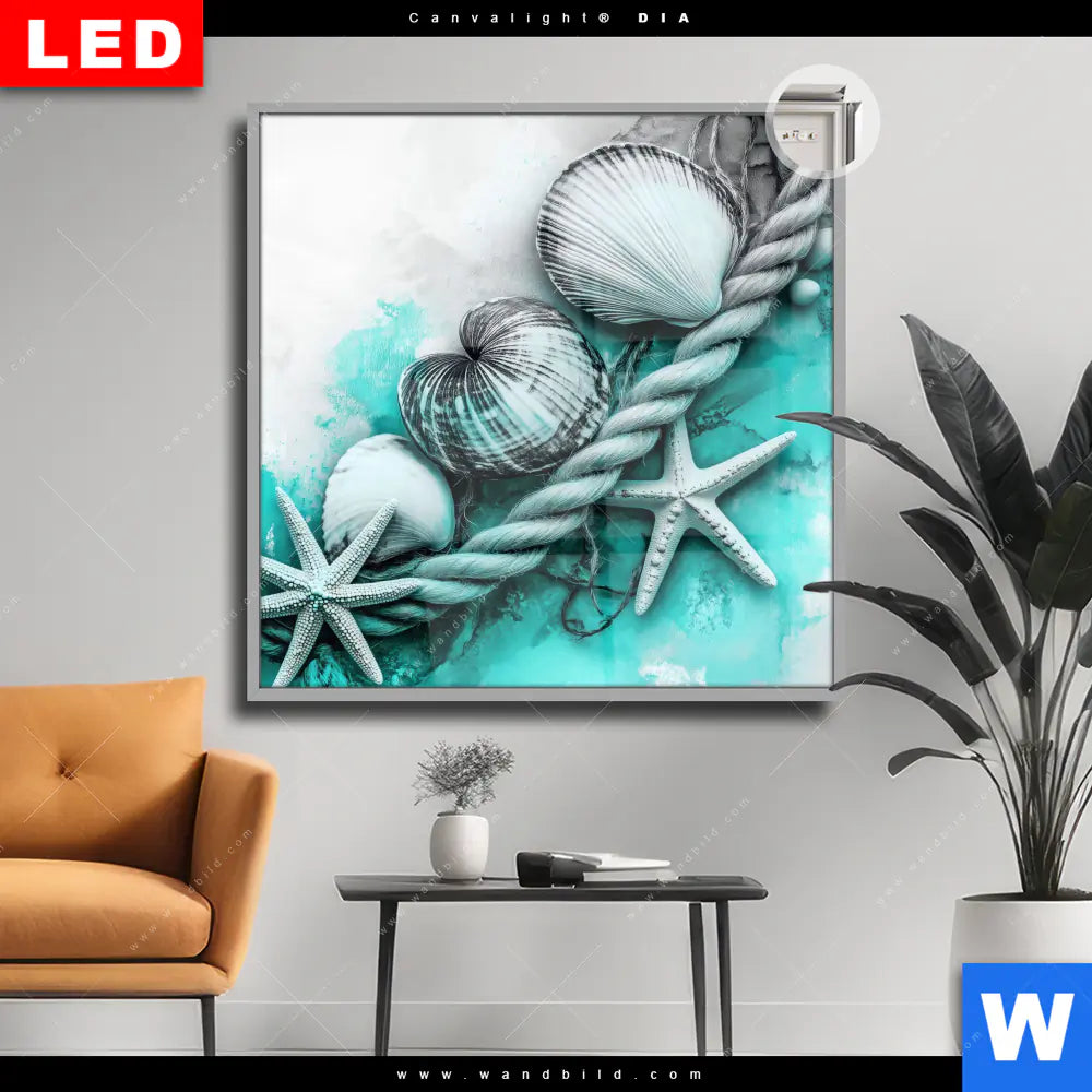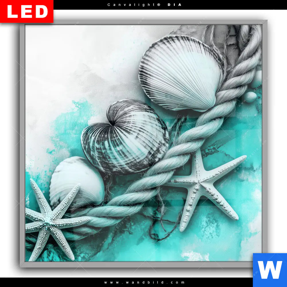 Canvalight® DIA Leuchtbild | Muscheln-Meereszauber in Türkis | Quadrat
