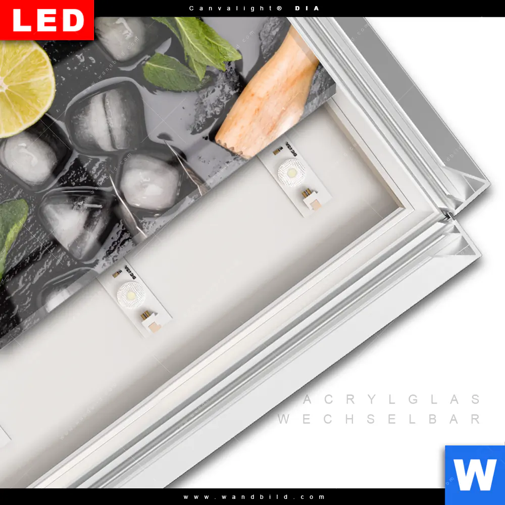 Canvalight® DIA Leuchtbild | Perfekte Zutaten für Cocktails | Quadrat