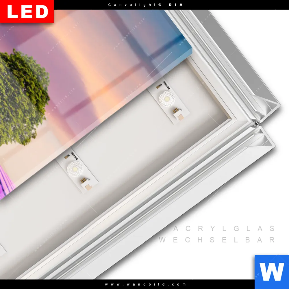 LED-Glasbild mit austauschbarem Acrylglas-Druck (Wechselbild)