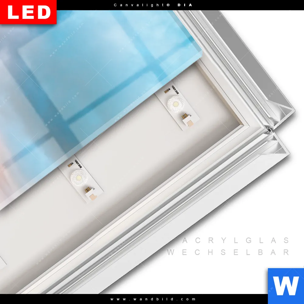 LED-Glasbild mit austauschbarem Acrylglas-Druck (Wechselbild)