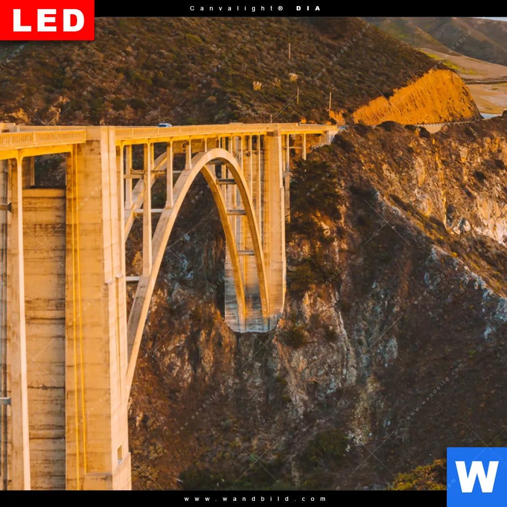 Canvalight® DIA Leuchtbild | Brücke an der Küste | Schmal