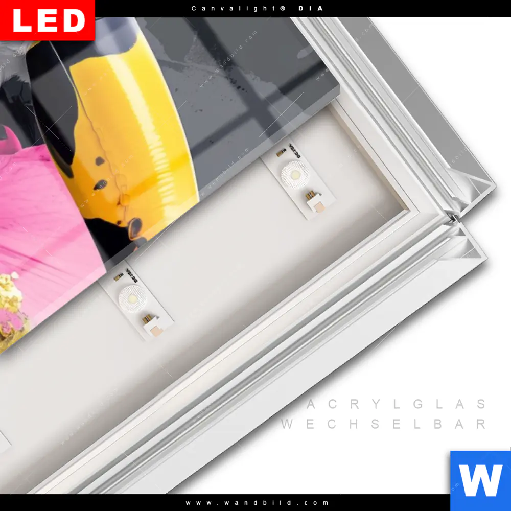 LED-Glasbild mit austauschbarem Acrylglas-Druck (Wechselbild)