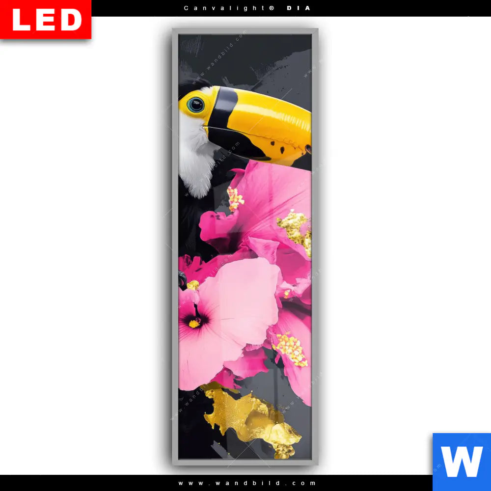 Canvalight® DIA Leuchtbild | Exotischer Tukan mit Blüten | Schmal