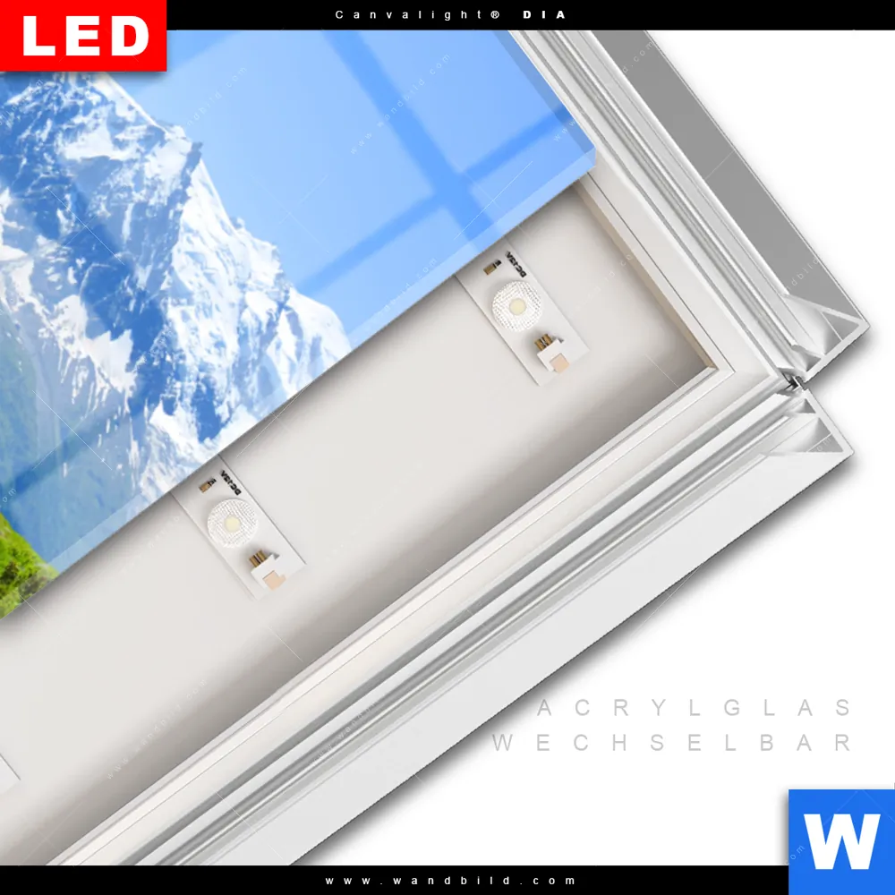 LED-Glasbild mit austauschbarem Acrylglas-Druck (Wechselbild)
