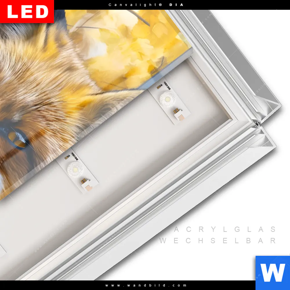 LED-Glasbild mit austauschbarem Acrylglas-Druck (Wechselbild)