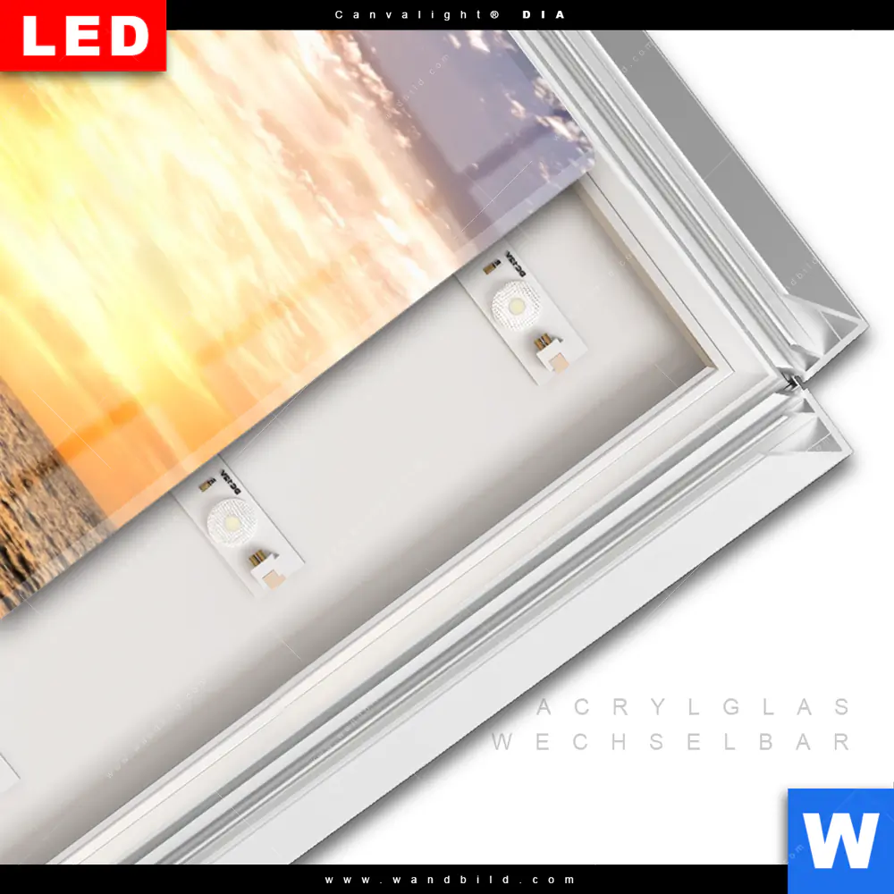 LED-Glasbild mit austauschbarem Acrylglas-Druck (Wechselbild)