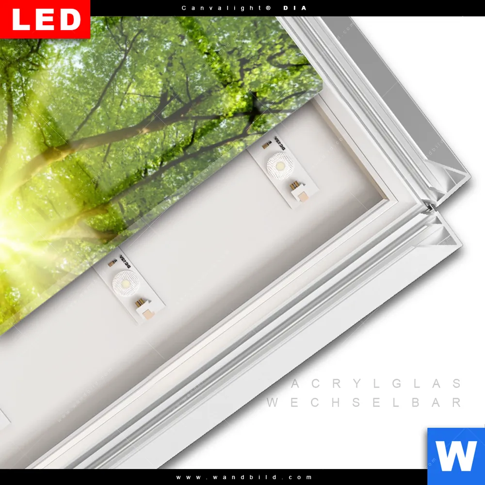 LED-Glasbild mit austauschbarem Acrylglas-Druck (Wechselbild)
