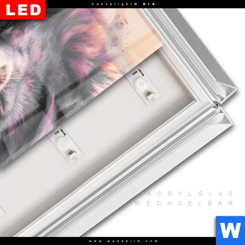 Canvalight® DIA Leuchtbild | Löwe im Farbensturm | Schmal