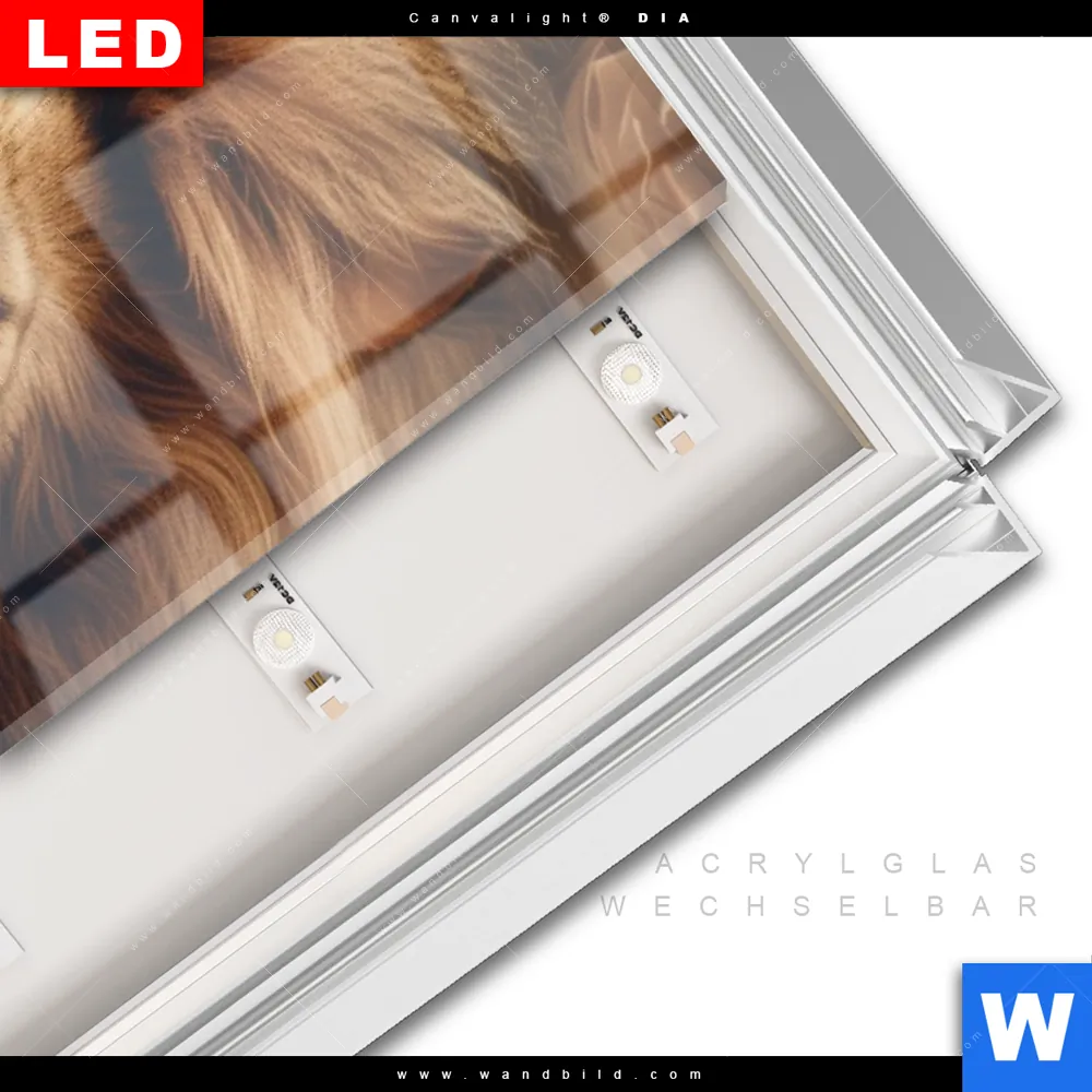 LED-Glasbild mit austauschbarem Acrylglas-Druck (Wechselbild)
