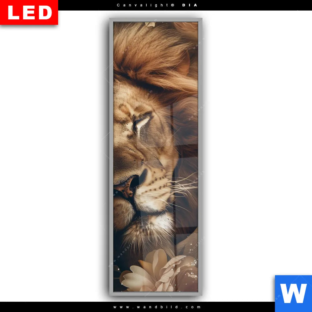 Canvalight® DIA Leuchtbild | Löwe schläft in Blüten | Schmal