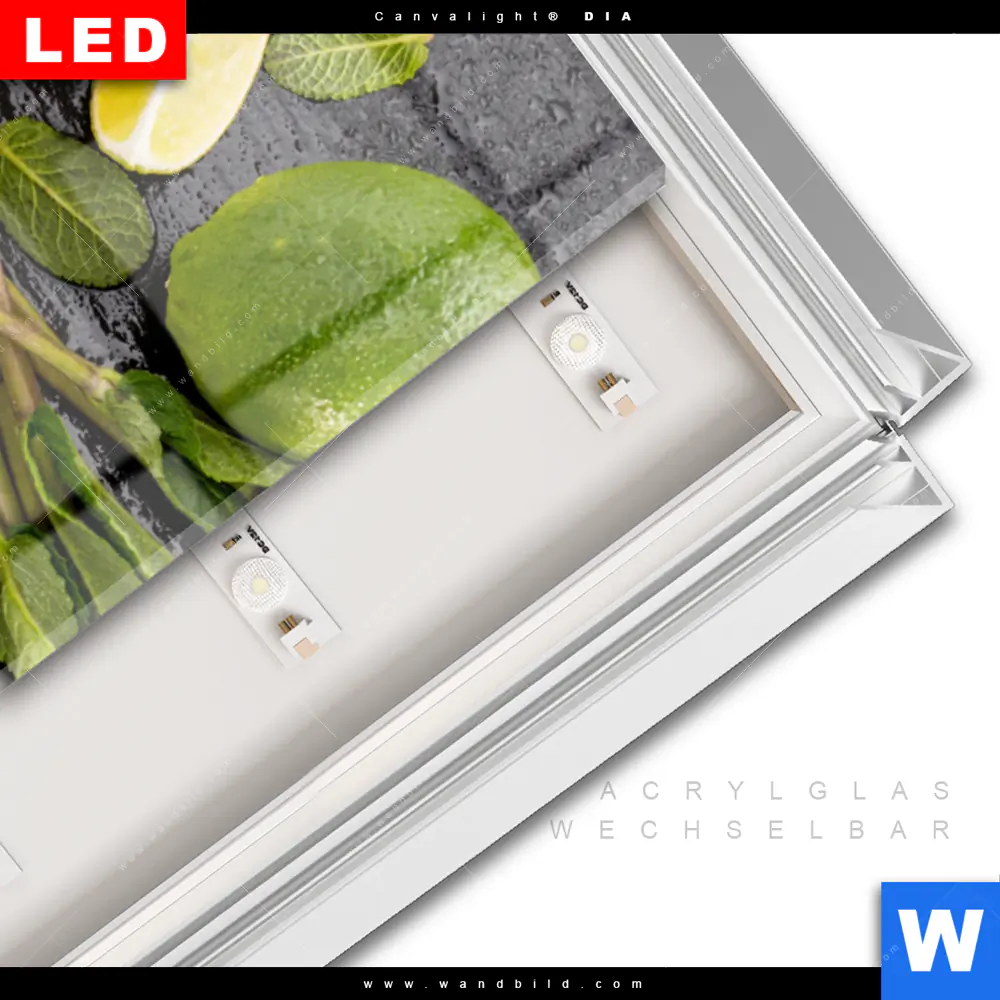 LED-Glasbild mit austauschbarem Acrylglas-Druck (Wechselbild)