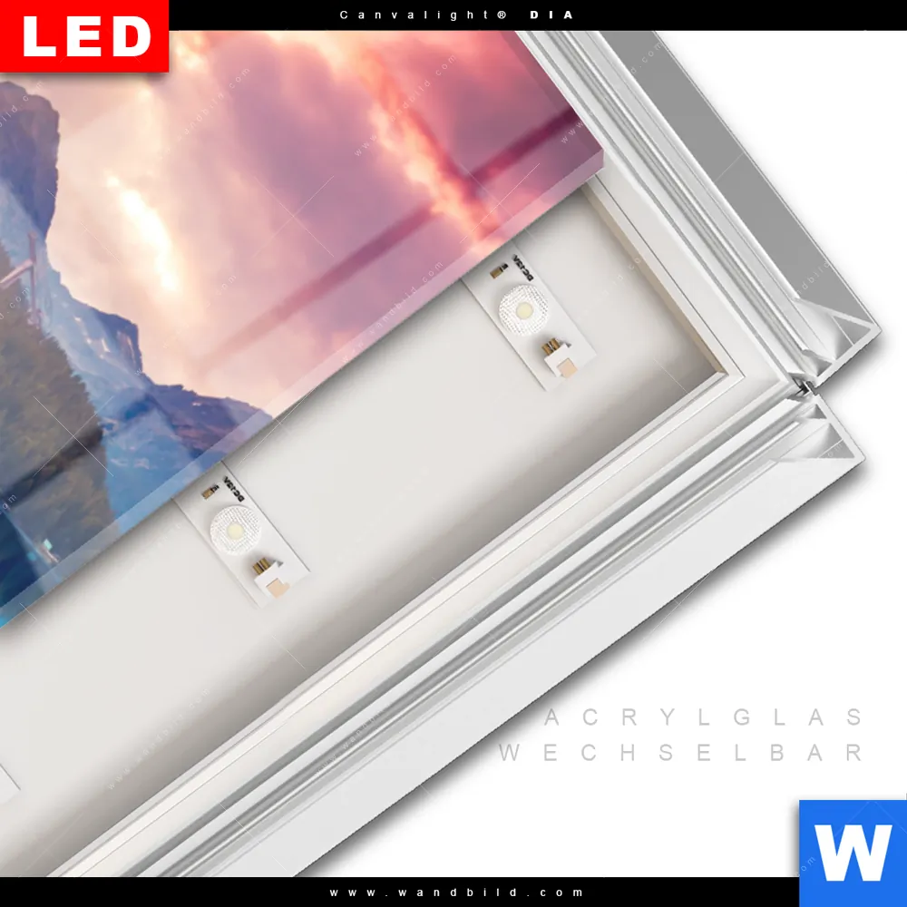 LED-Glasbild mit austauschbarem Acrylglas-Druck (Wechselbild)