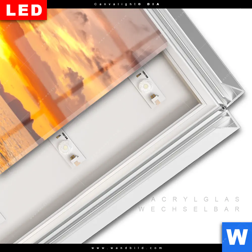 LED-Glasbild mit austauschbarem Acrylglas-Druck (Wechselbild)