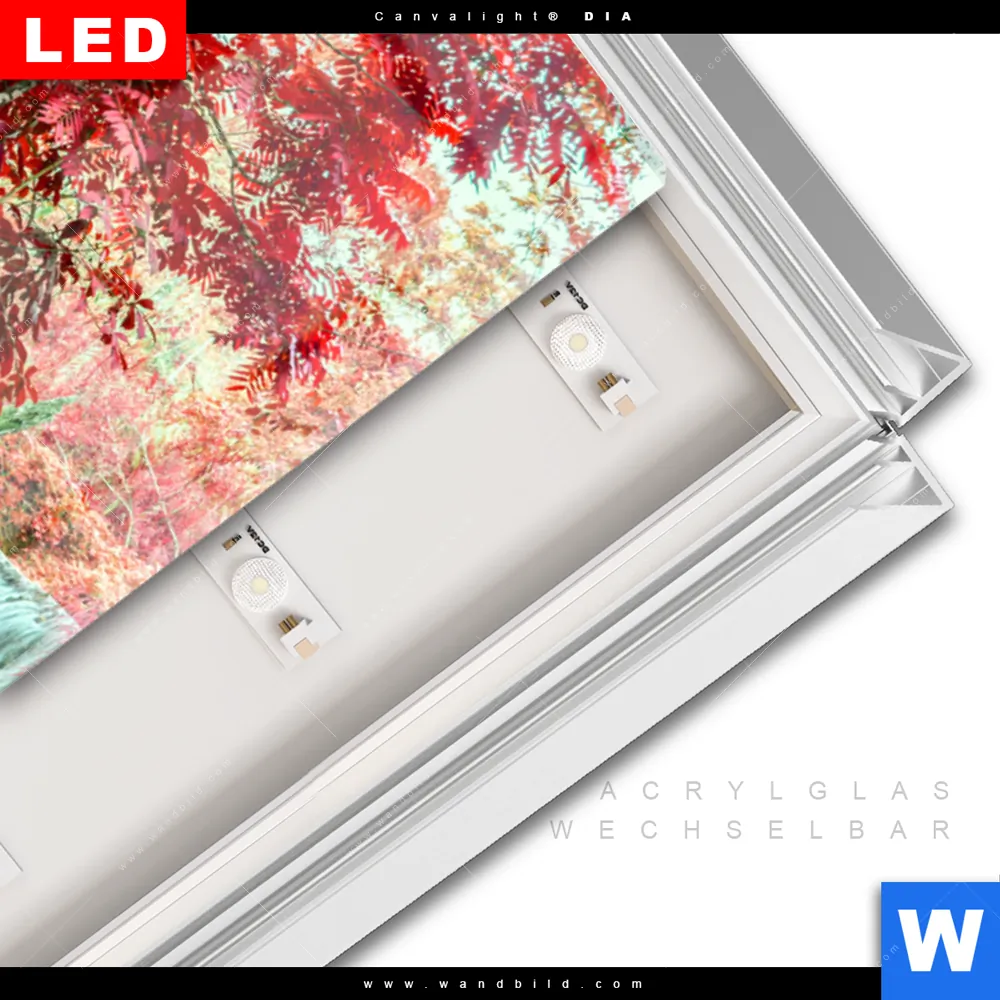 LED-Glasbild mit austauschbarem Acrylglas-Druck (Wechselbild)